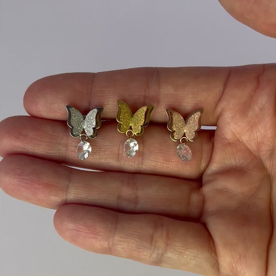 Diese wunderschönen Schmetterlings-Ohrringe verbinden schlichte Eleganz mit funkelndem Glanz und luxuriösem Flair. Mit ihrem verspielten Design und strahlenden Finish sind sie das perfekte Accessoire für jeden Anlass – ob alltäglich oder festlich. Die zarten Schmetterlinge fangen das Licht wunderbar ein und sorgen für einen Hauch von Glamour an deinen Ohren. Ein Statement-Piece, das Persönlichkeit und Glanz ausstrahlt!