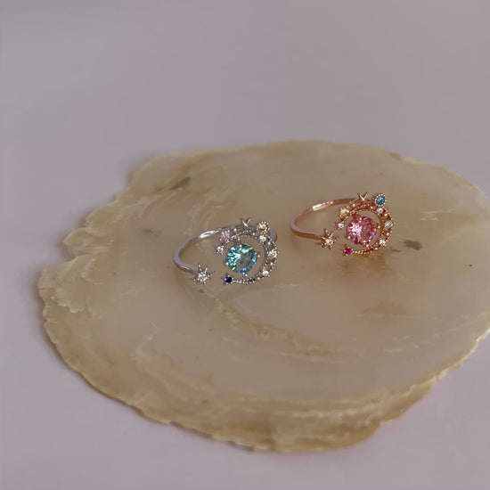 Der Crescent Moon Ring vereint verspielten Charme mit funkelndem Glitzer – ein Accessoire, das Aufmerksamkeit garantiert. Mit seinem mondinspirierten Design bringt er einzigartigen Glanz in jeden Look und unterstreicht Ihre Persönlichkeit auf elegante Weise. Gönnen Sie sich diesen besonderen Ring und lassen Sie sich von seinem strahlenden Zauber begeistern.