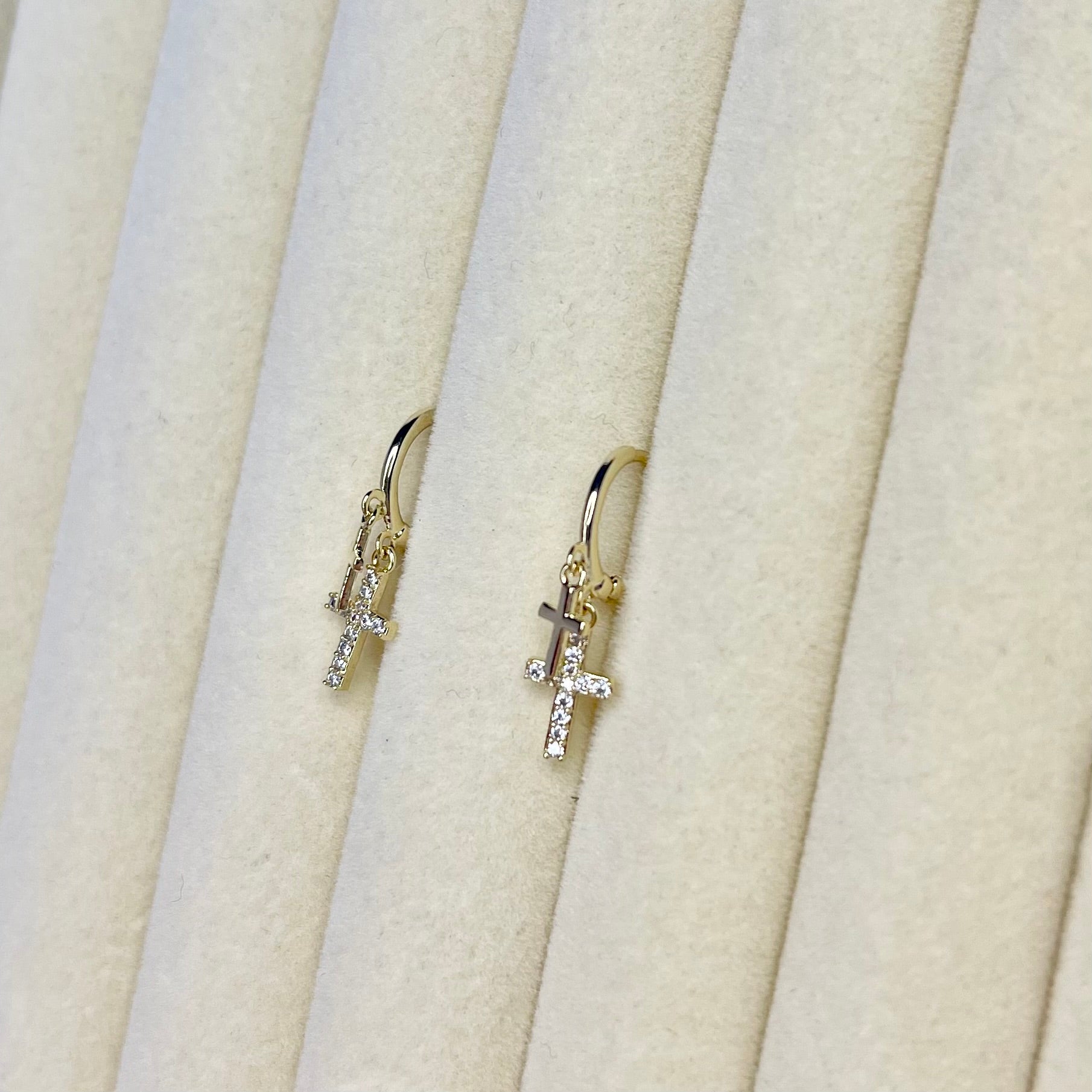 Kleine funkelnde Kreuze, die das Licht einfangen und dein Ohr zum Strahlen bringen! Diese eleganten Ohrringe verbinden zeitlose Symbolik mit modernem Glanz. Perfekt für jeden Tag oder als besonderes Accessoire – sie sind dein neuer Lieblings-Begleiter, der garantiert bewundernde Blicke anzieht. Zart, aber mit Charakter!