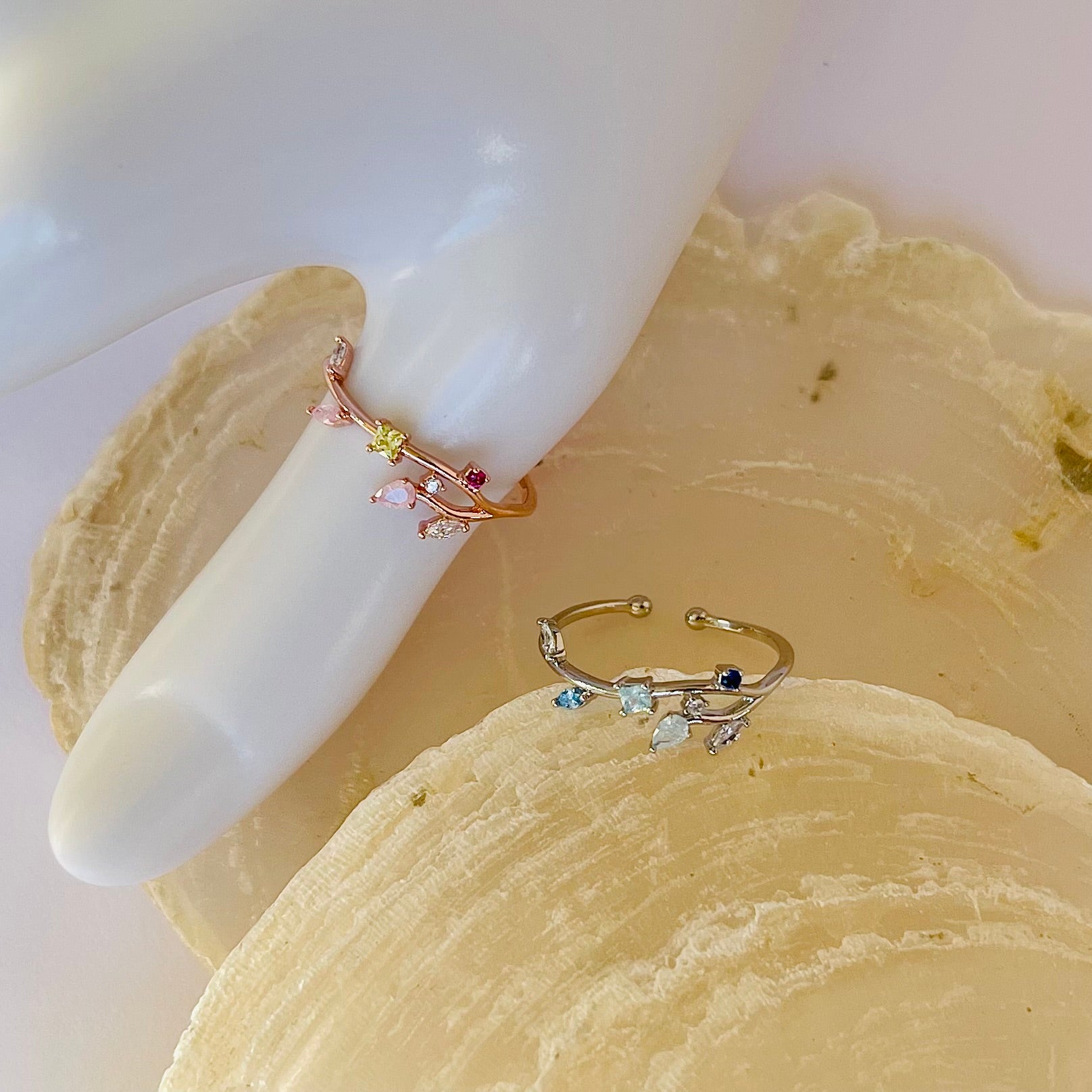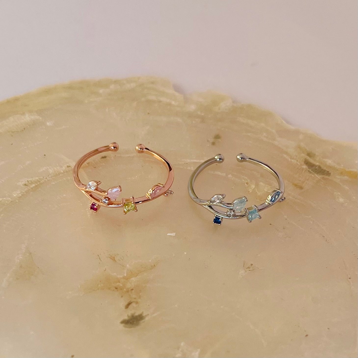 Dieser Ring besticht durch seine schlichte, aber verspielte Gestaltung. Ein Hauch von Natur verleiht ihm eine besondere Ästhetik und macht ihn zum perfekten Accessoire für den Alltag oder besondere Anlässe. Ein zeitloser Begleiter für jede Frau.