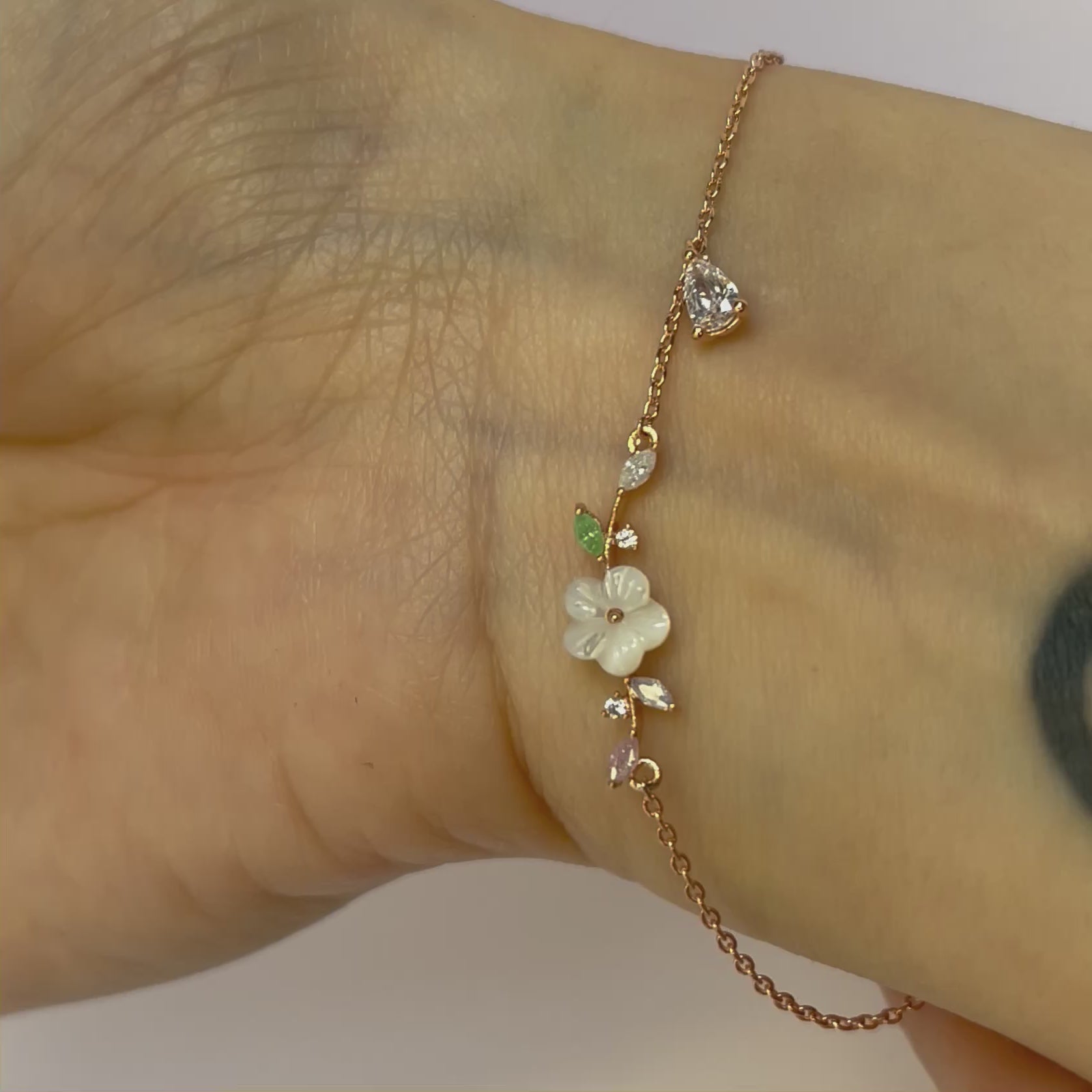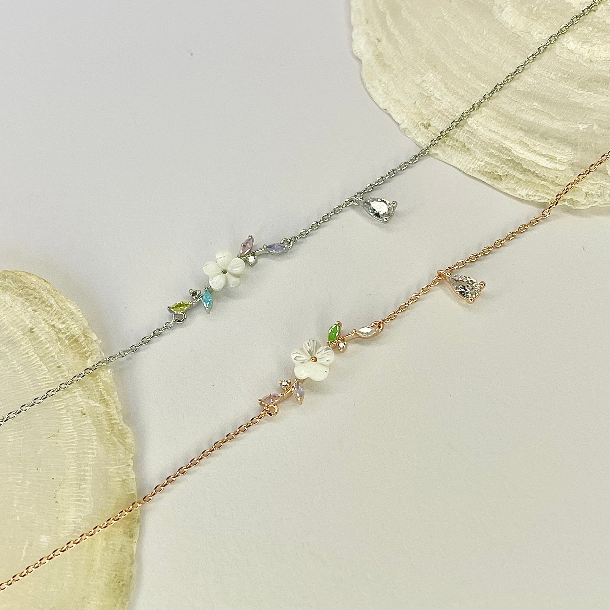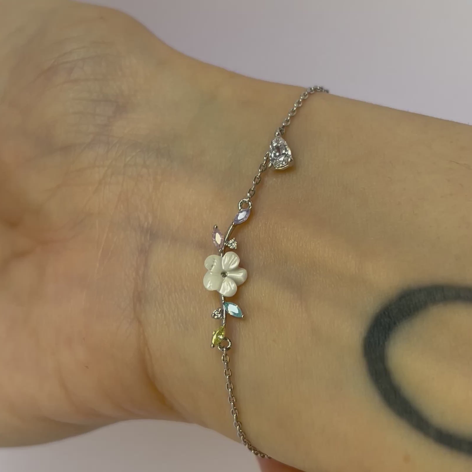 Das Exquisite Fleur Armband vereint filigrane Blütendetails mit funkelnden Glitzerelementen zu einem zeitlosen Schmuckstück. Jedes Armband wird mit präziser Handwerkskunst gefertigt und besticht durch elegante Blütenmotive, die von glänzenden Kristallen akzentuiert werden. Die sanfte Tränenform des Anhängers verleiht dem Design eine romantische Note und fängt das Licht auf wunderbare Weise ein. Perfekt für besondere Anlässe oder als täglicher Begleiter, der Ihre Eleganz unterstreicht.