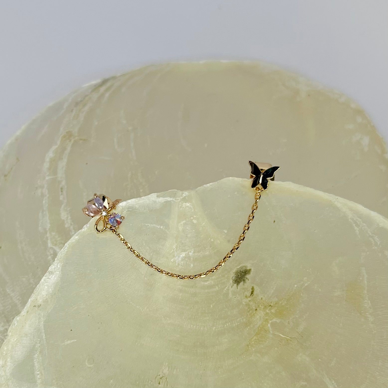 Entdecke die zauberhafte Eleganz unserer Floral Nabi Ohrringe – ein funkelndes Meisterwerk, das Blütenblätter mit verspielten Schmetterlingen vereint. Dieser Ohrring fängt das Licht mit glitzerndem Glanz ein und verleiht deinem Look eine magische, feminine Note. Perfekt für alle, die subtile Natur-Inspiration mit glamourösen Details lieben. Dieses wunderschöne Accessoire verwandelt jeden Moment in etwas Besonderes und lässt dich überall strahlen.