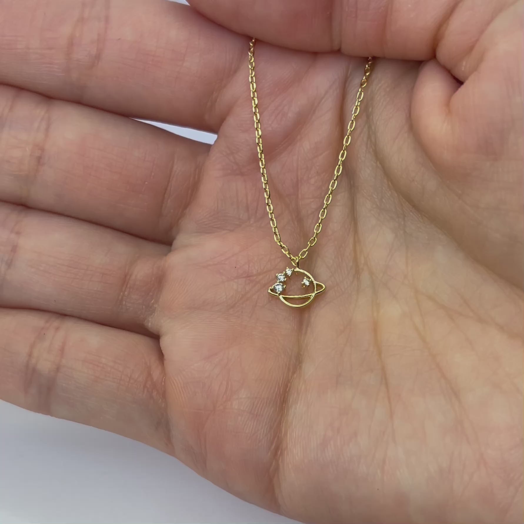 Entdecke die faszinierende Eleganz unserer Golden Saturn Halskette – ein Schmuckstück, das kosmische Schönheit mit irdischer Raffinesse verbindet. Das delicate Design mit seinem charakteristischen Ringmotiv fängt die mystische Ausstrahlung des Planeten Saturn ein und wird zum Blickfang an deinem Hals. Perfekt für alle, die sich nach etwas Besonderem sehnen, das ihre Persönlichkeit widerspiegelt. Ein Statement für Träumer und Liebhaber von einzigartigen Accessoires.