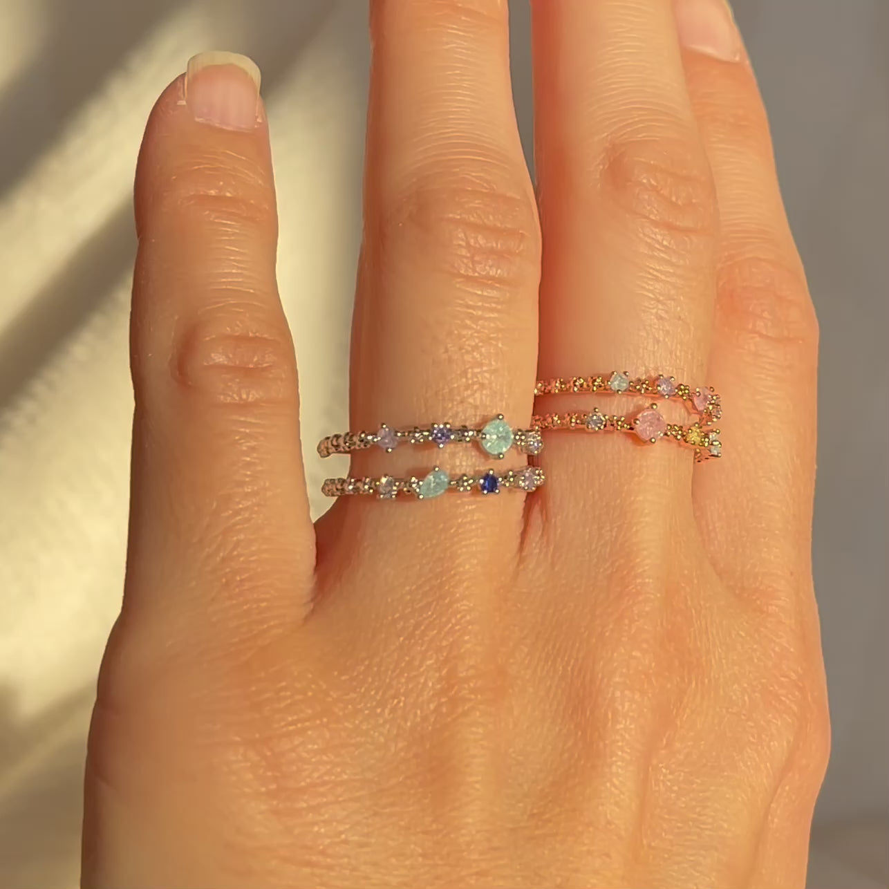 Dieser funkelnde Ring ist ein echter Hingucker! Die leuchtenden Farben und das kokette Design machen ihn zu einem Must-Have Schmuckstück. Mit diesem Ring strahlen Sie wie ein Regenbogen und heben sich von der Masse ab. Perfekt für alle, die das Besondere lieben.