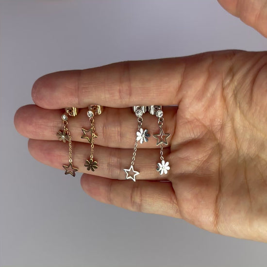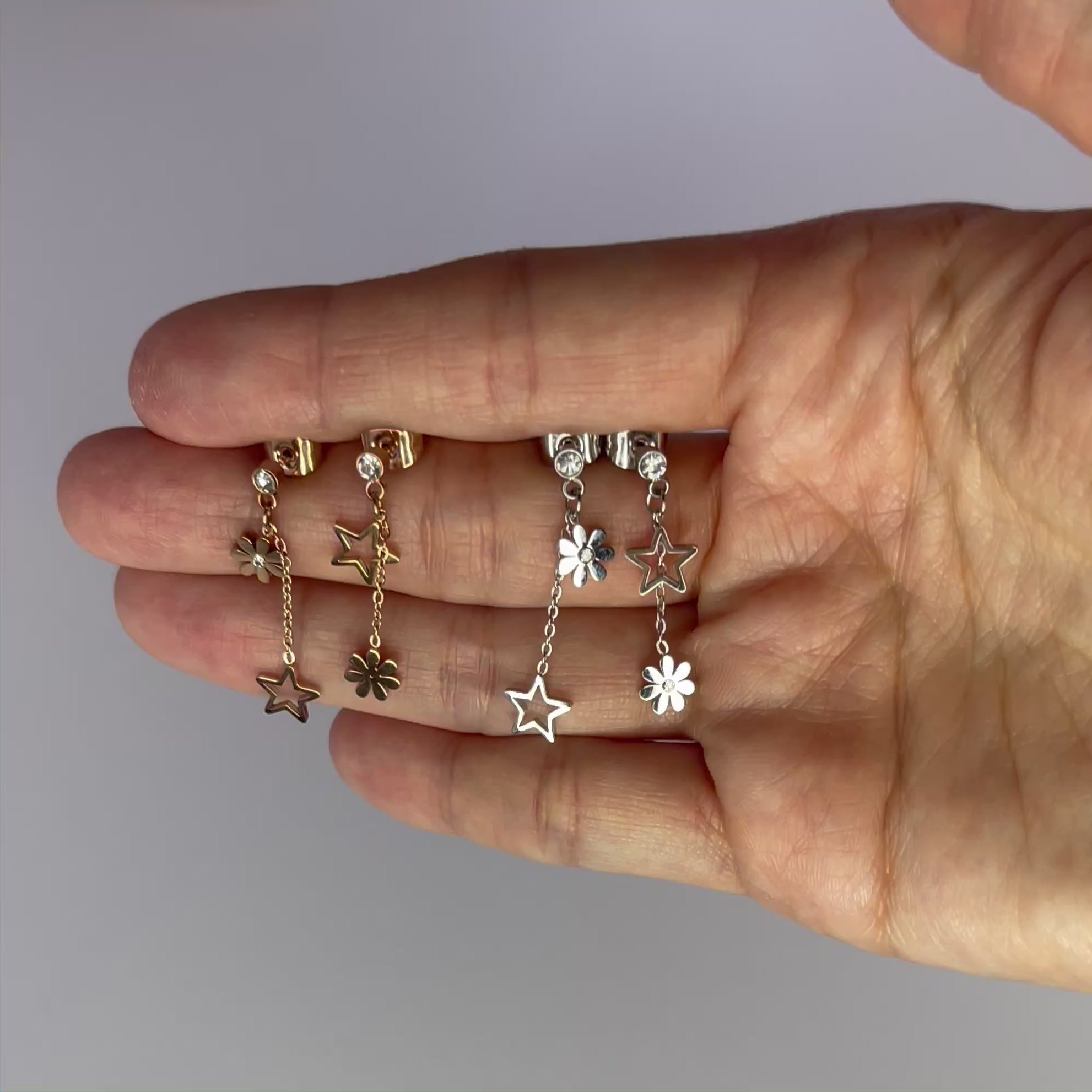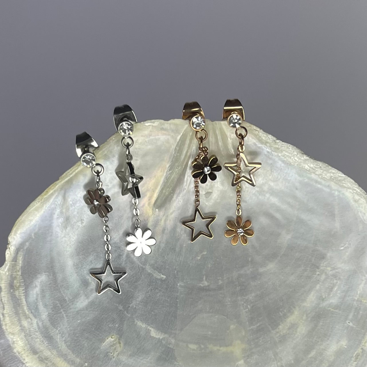 Stars & Flowers Ohrringe – elegante Accessoires, die Verspieltheit mit zeitloser Raffinesse verbinden. Diese charmanten Ohrringe vereinen das romantische Motiv zarter Blüten mit dem zeitlosen Glanz von Sternen. Das durchdachte Design schafft einen subtilen Kontrast zwischen süßer Verspielung und gehobener Eleganz. Perfekt für alle, die ihrem Look eine poetische Note verleihen möchten – ob zu besonderen Anlässen oder als tägliches Statement-Piece.